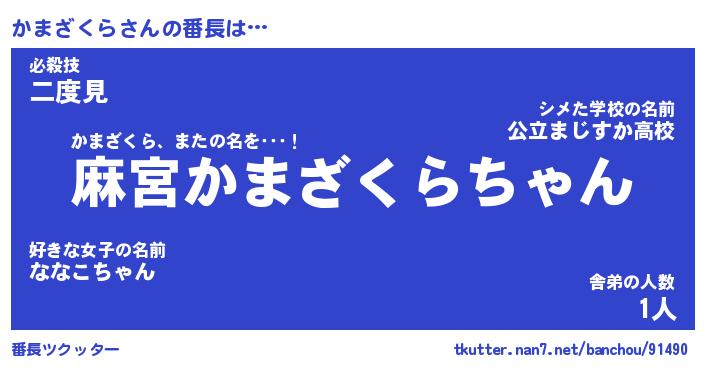 | ヒーロー風カッコイイあだ名 | 『スーパーカマザクラ』『銀牙騎士カマ』 |