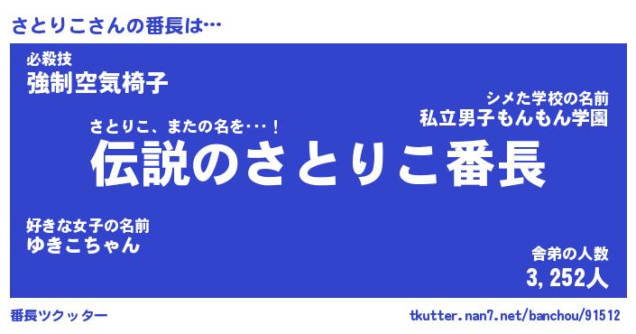 | 伝説のあだ名 | 『伝説のスナイパーさとりこ』 |