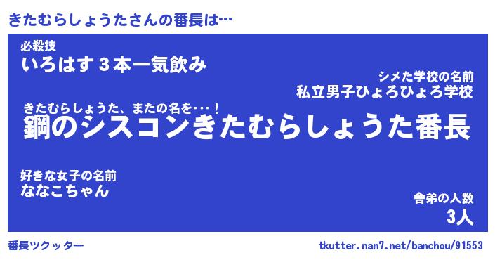 | ピコ太郎風あだ名 | 『キコ一郎』『ピキ八郎』『キタ次郎』 |