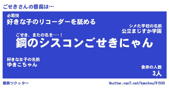 | 意味不明あだ名 | 『ペロリンごせき』『ごせきフォーエバー』 |