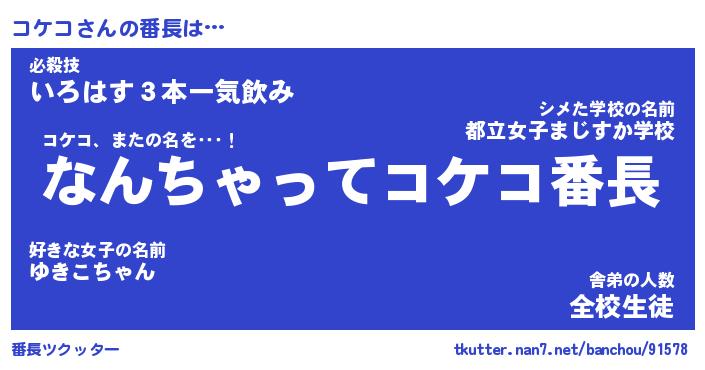 | ヘコむあだ名 | 『コケにー』『なまこ酢』『コケを』 |