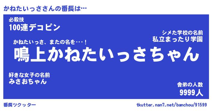 | ヒーロー風カッコイイあだ名 | 『スーパーカネタイッサ』『天弓騎士カネ』 |