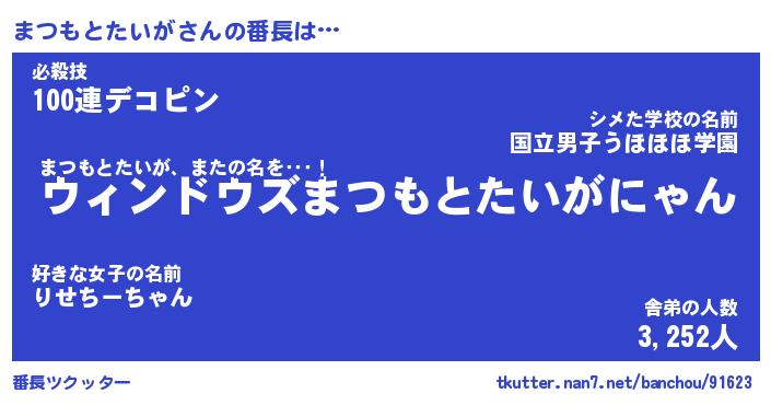 | ピコ太郎風あだ名 | 『マコ五郎』『ピマ四郎』『マツ一郎』 |