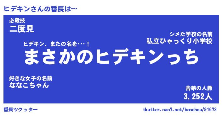 | ピコ太郎風あだ名 | 『ヒコ八郎』『ピヒ三郎』『ヒデ三郎』 |