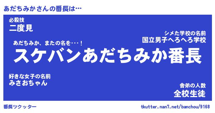| ファンタジー風あだ名 | 『アダフェル』『エターナルアダチミカー』 |