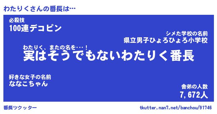| 2回繰り返すあだ名 | 『わたわた』『わわたた』『あんあん』 |