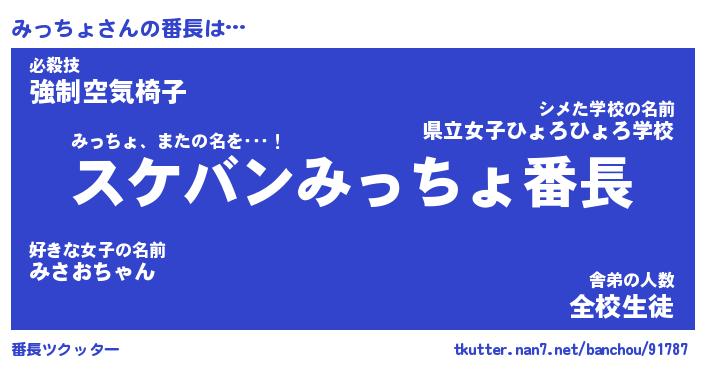 | 意味不明あだ名 | 『ペロリンみっちょ』『永久保存みっちょ』 |