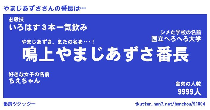 | 肩書あだ名 | 『やまじあずさ店長』『やまじあずさ団長』 |