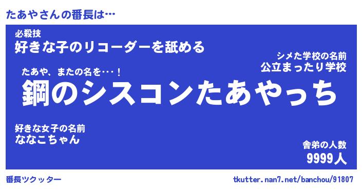 | 意味不明あだ名 | 『ペロリンたあや』『たあやフォーエバー』 |