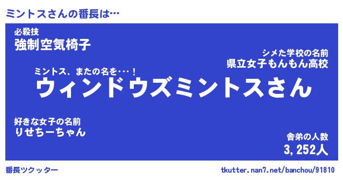 | ファンタジー風あだ名 | 『ミンフェル』『エターナルミントスー』 |