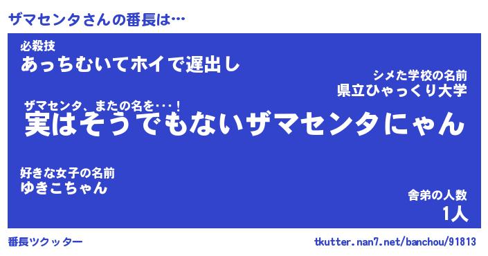 | ヒーロー風カッコイイあだ名 | 『スーパーザマセンタ』『黄金騎士ザマ』 |