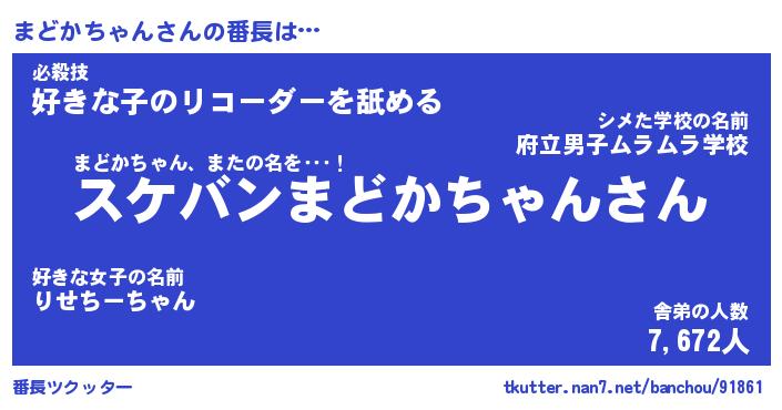 | ヒーロー風カッコイイあだ名 | 『スーパーマドカチャン』『炎刃騎士マド』 |