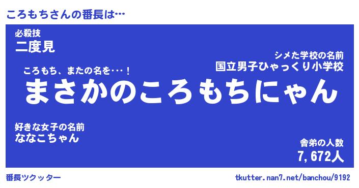 | ヒーロー風カッコイイあだ名 | 『スーパーコロモチ』『炎刃騎士コロ』 |