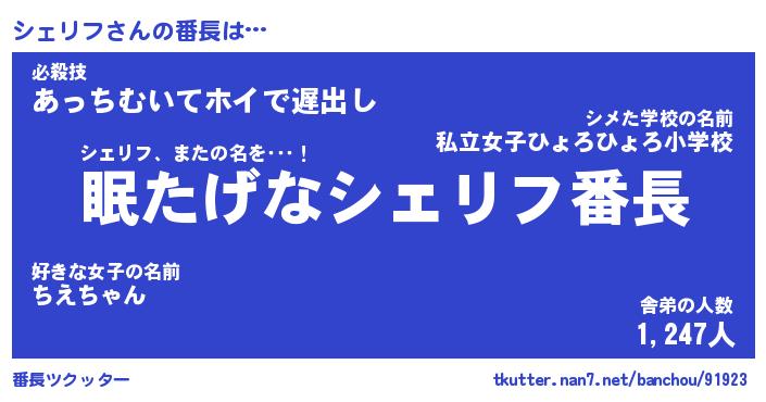 | ヒーロー風カッコイイあだ名 | 『スーパーシェリフ』『銀牙騎士シェ』 |