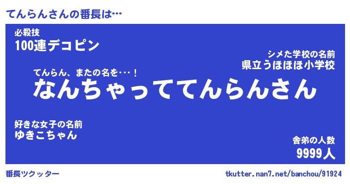 | ヒーロー風カッコイイあだ名 | 『スーパーテンラン』『黄金騎士テン』 |