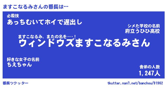 | 肩書あだ名 | 『ますこなるみCEO』『ますこなるみ班長』 |