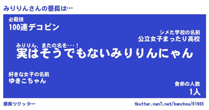 | 伝説のあだ名 | 『封印されしスナイパーみりりん』 |