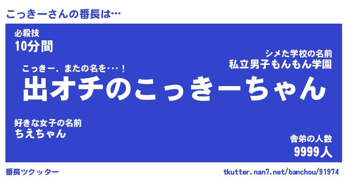 | 意味不明あだ名 | 『ペロリンこっきー』『永久保存こっきー』 |