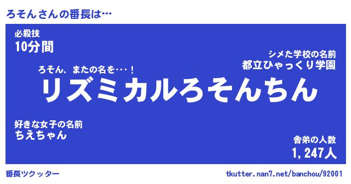 | 意味不明あだ名 | 『ペロリンろそん』『ろそんフォーエバー』 |