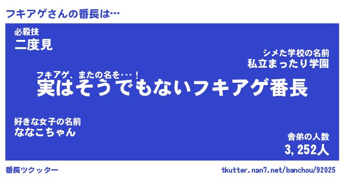 | ピコ太郎風あだ名 | 『フコ三郎』『ピフ四郎』『フキ次郎』 |