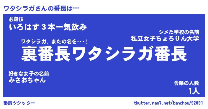 | ヒーロー風カッコイイあだ名 | 『スーパーワタシラガ』『銀牙騎士ワタ』 |