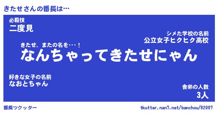 | ヒーロー風カッコイイあだ名 | 『スーパーキタセ』『ウルトラきたせマン』 |