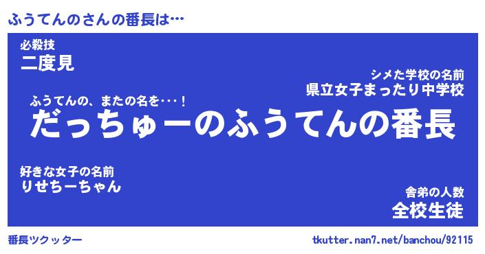 | 男性向けラノベタイトル風あだ名 | 『ふうてんのの憂鬱』 |
