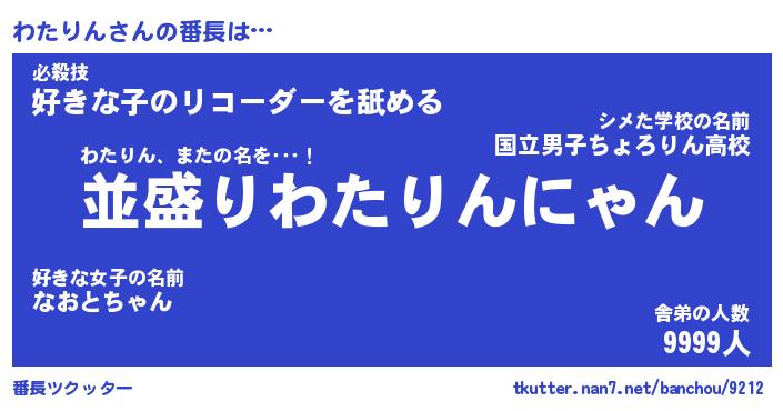 | 意味不明あだ名 | 『ペロリンわたりん』『永久保存わたりん』 |