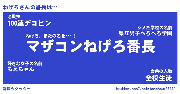 | ヒーロー風カッコイイあだ名 | 『スーパーネゲロ』『ウルトラねげろマン』 |