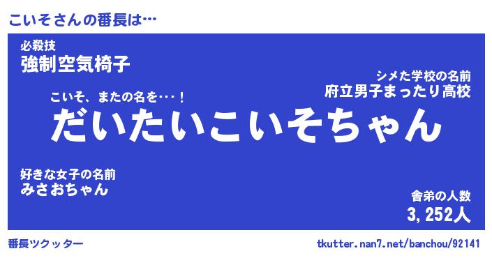 | 肩書あだ名 | 『こいそ社長』『こいそ総理大臣』 |