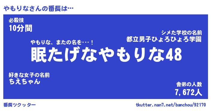 | 意味不明あだ名 | 『ペロリンやもりな』『永久保存やもりな』 |