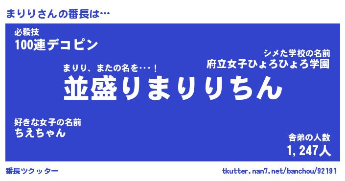 | ヒーロー風カッコイイあだ名 | 『スーパーマリリ』『ウルトラまりりマン』 |
