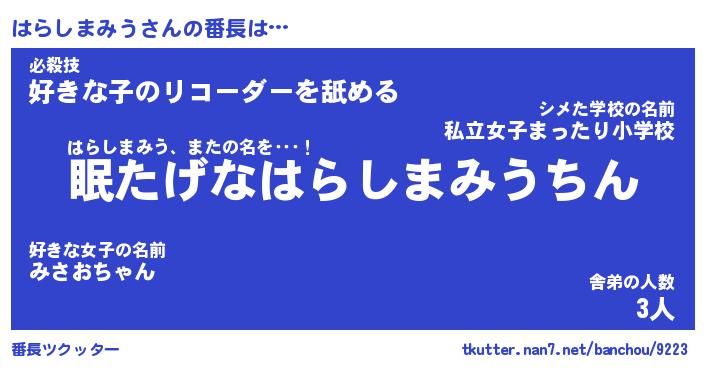 | 意味不明あだ名 | 『ペロリンはらしまみう』 |