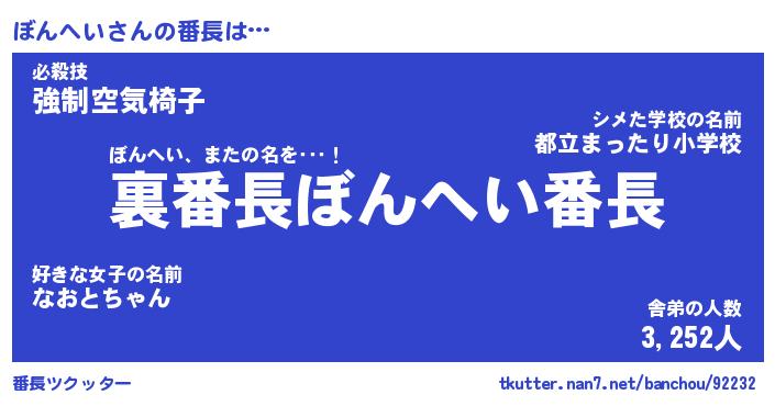 | 2回繰り返すあだ名 | 『ぼんぼん』『ぼぼんん』『うずうず』 |