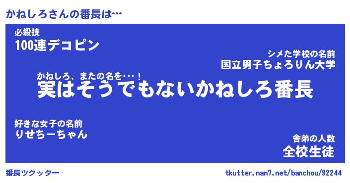 | 意味不明あだ名 | 『ペロリンかねしろ』『永久保存かねしろ』 |