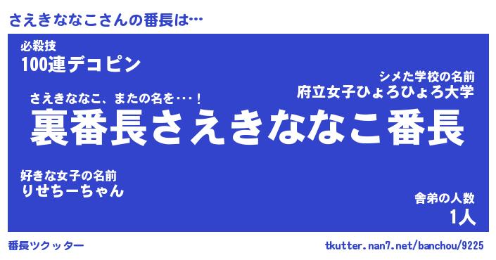 | ヒーロー風カッコイイあだ名 | 『スーパーサエキナナコ』『魔戒騎士サエ』 |