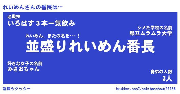 | 肩書あだ名 | 『れいめん社長』『れいめん国家主席』 |