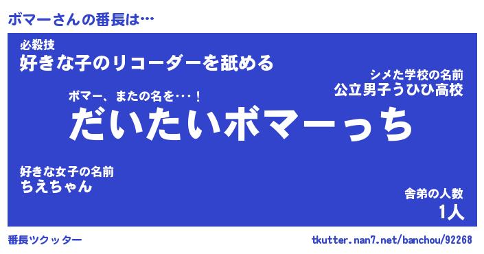 | ヘコむあだ名 | 『ボマにー』『酢こんぶ』『ボマ太郎』 |