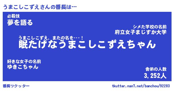 | 伝説のあだ名 | 『封印されしスナイパーうまこしこずえ』 |