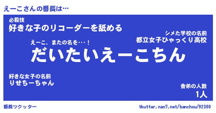 | 意味不明あだ名 | 『ペロリンえーこ』『えーこフォーエバー』 |