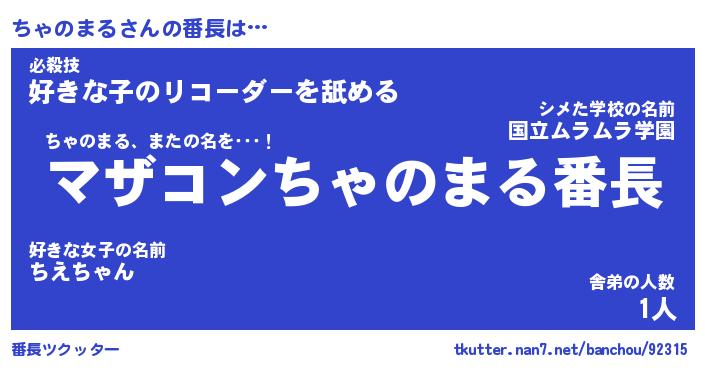 | ヒーロー風カッコイイあだ名 | 『スーパーチャノマル』『黄金騎士チャ』 |