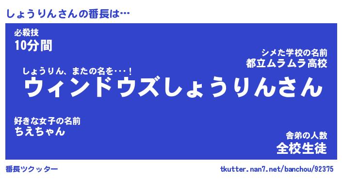| 伝説のあだ名 | 『伝説のスナイパーしょうりん』 |