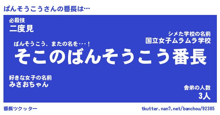 | ポケモン風あだ名 | 『バンチュウ』『バンソダネ』 |
