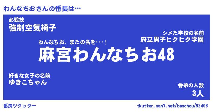 | 肩書あだ名 | 『わんなちお店長』『わんなちお総理大臣』 |