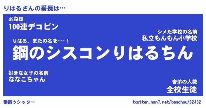 | 伝説のあだ名 | 『封印されしスナイパーりはる』 |
