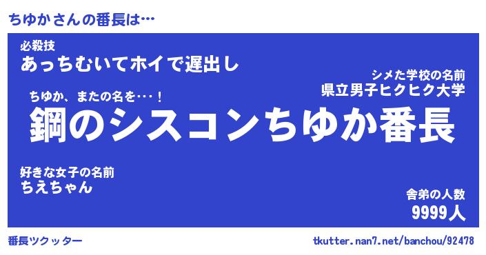 | ファンタジー風あだ名 | 『チユフェル』『エターナルチユカー』 |