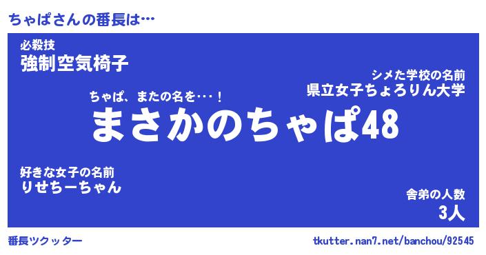 | ヒーロー風カッコイイあだ名 | 『スーパーチャパ』『ウルトラちゃぱマン』 |