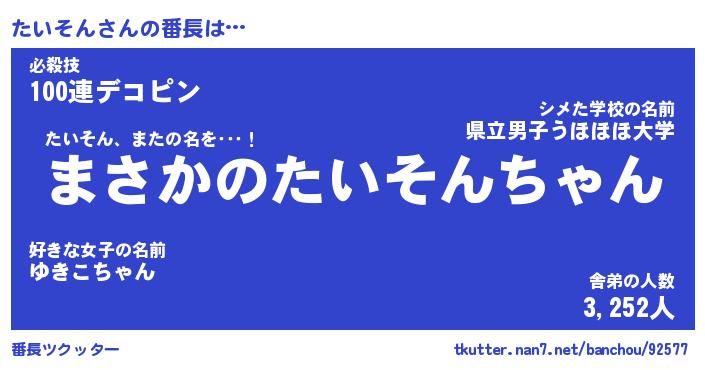 | 意味不明あだ名 | 『ペロリンたいそん』『永久保存たいそん』 |