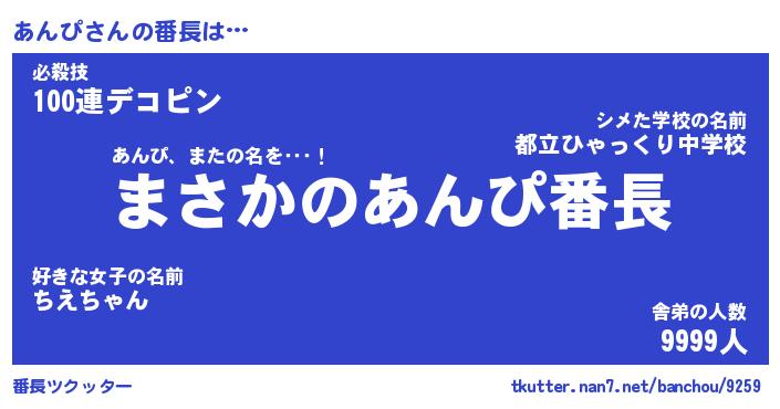 | 意味不明あだ名 | 『ペロリンあんぴ』『あんぴフォーエバー』 |
