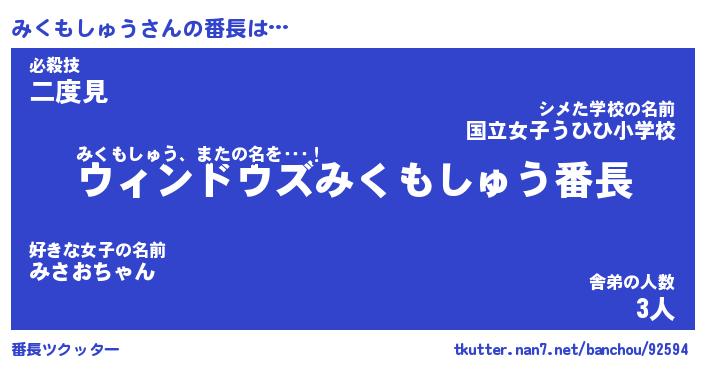 | 肩書あだ名 | 『みくもしゅう御曹司』 |